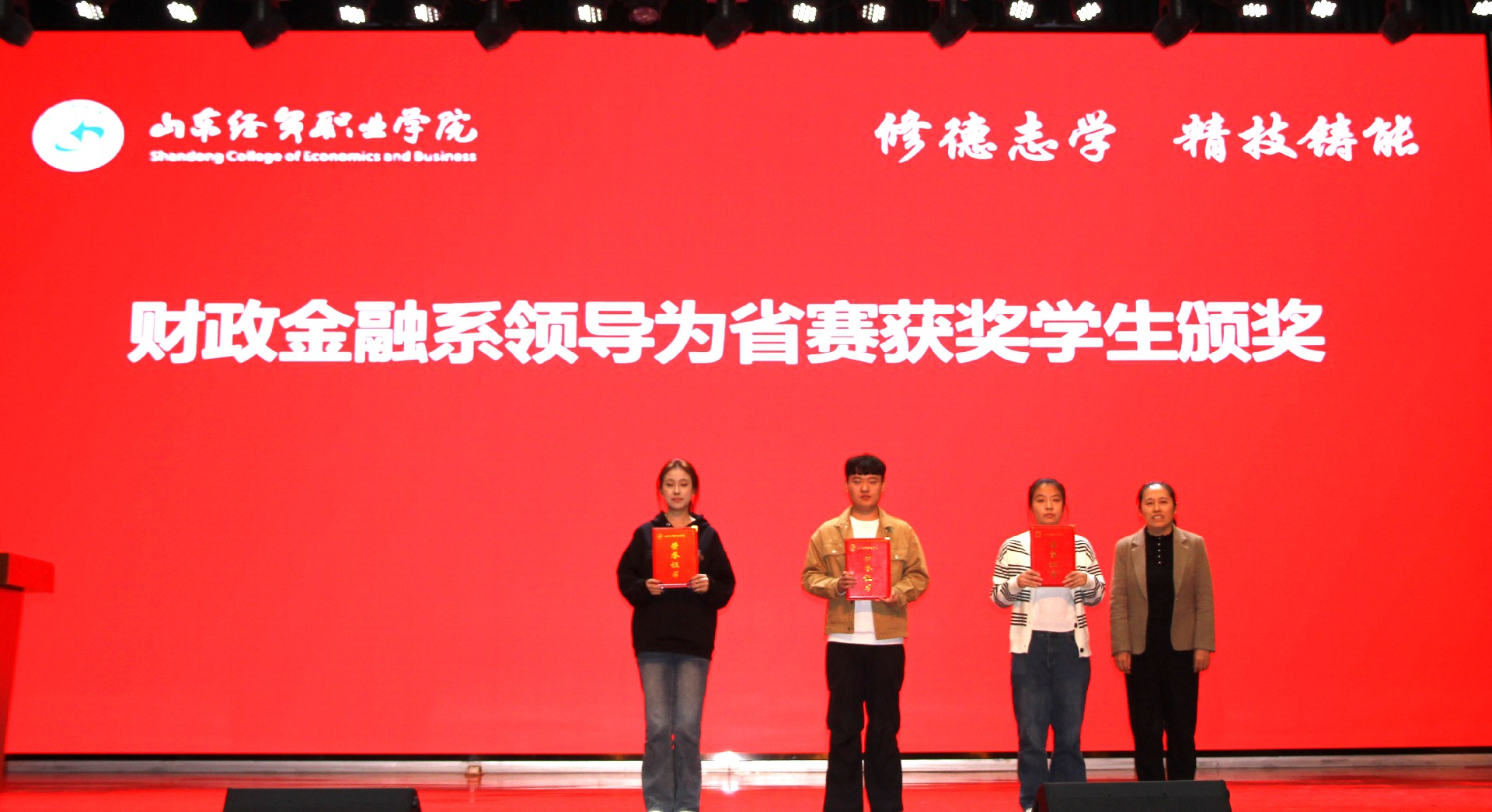 大会对2024—2025年度在职业院校技能大赛、创新创业大赛等赛项中斩获省级以上奖项的同学进行了集中表彰。