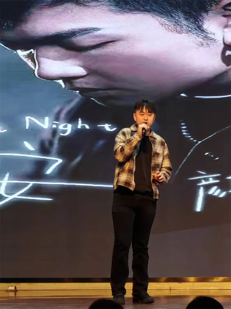 孙秦雅涵和柳佳深情对唱《天若有情》,诠释命运交织的浪漫; 王冠然独唱《玫瑰》,沙哑嗓音赋予民谣沧桑质感;贾成伟粤语演唱《广东爱情故事》,烟火气中流淌时代记忆;刘俊男、刘孟霖、张浩然演唱的《老男孩》,用振奋人心的合唱点燃全场热情。