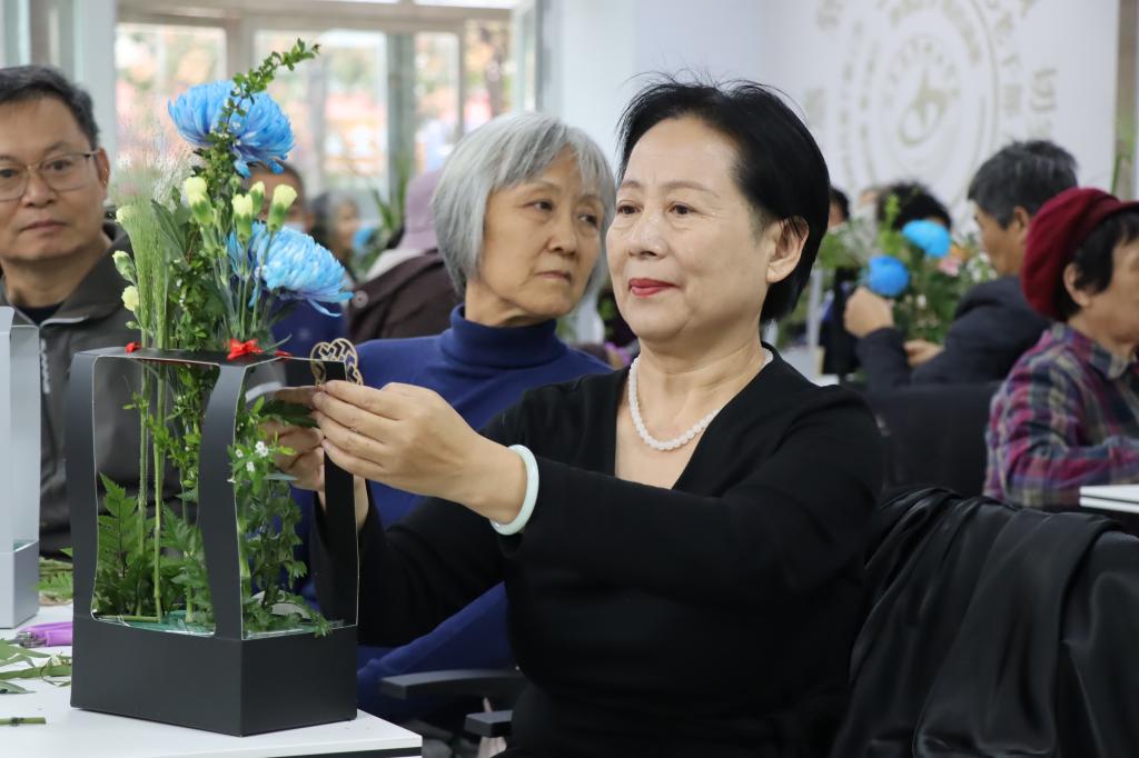 仪式结束后,精心策划的“金秋重阳,情暖经贸”系列主题活动随即展开。本次活动设置了四大趣味活动区域:在“雅韵插花”区,老教师们在专业教师的指导下巧手生花,创作出一篮篮独具匠心的花艺作品,感受着花草的美好;“趣味投篮”区则充满了运动的活力,老同志们精神矍铄,精准投掷,在轻松愉快的氛围中活动筋骨;“楚河汉界·象棋对决”区,棋友们凝神静气,在方寸棋盘上排兵布阵,切磋棋艺,尽显智慧风采;而在“牌乐无穷·扑克竞技”区,老朋友们相聚一堂,在“争上游”的游戏中斗智斗勇,畅叙情谊,现场气氛轻松而热烈。