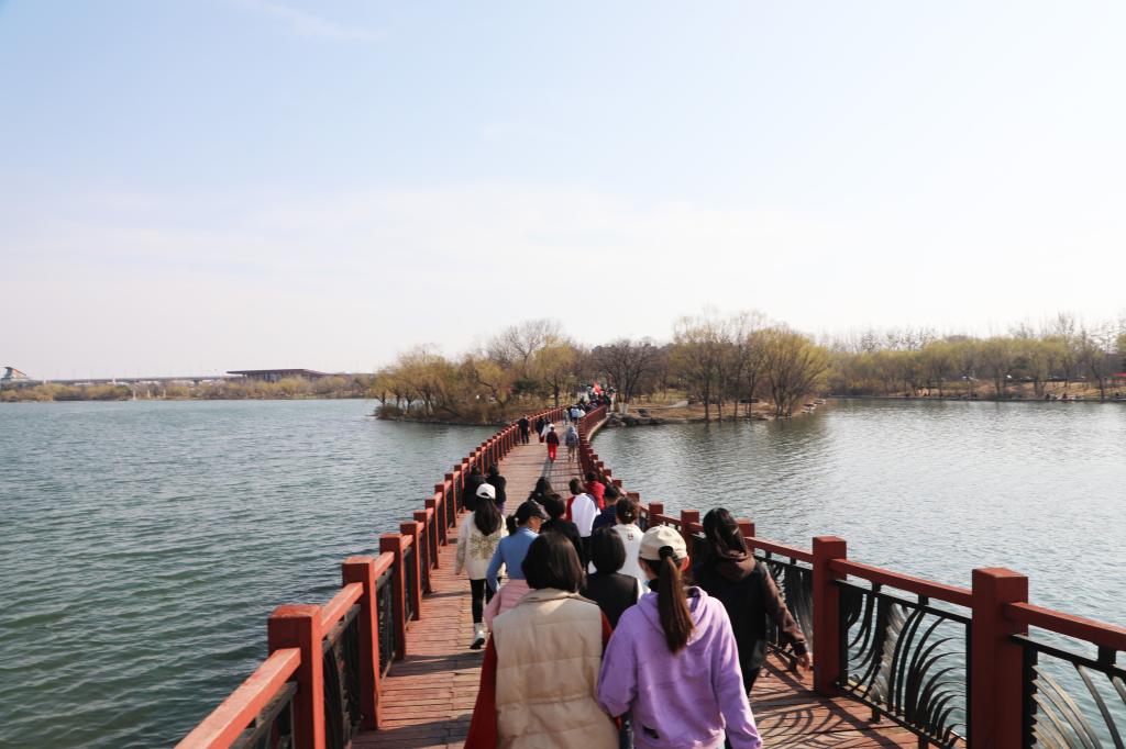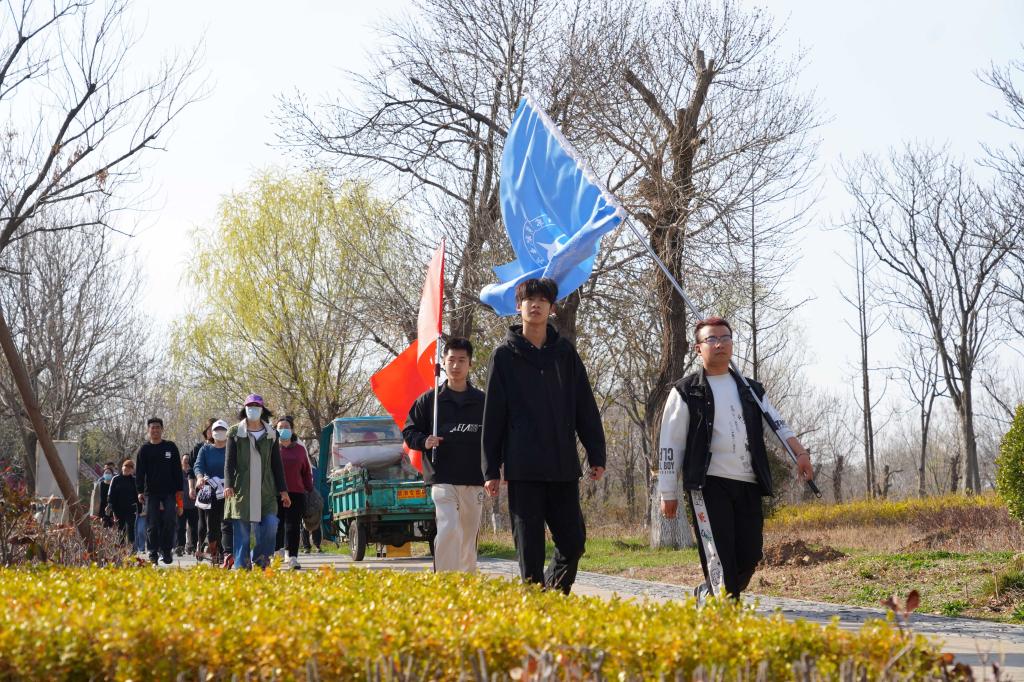 迎着和煦的春风,健步走队伍沿既定路线迈进。师生志愿者们在十字路口引导大家有序过马路,收获一致好评。一路上,大家边走边聊边欣赏鸢都湖沿途秀美的春光,一片欢声笑语。很快,第一健步走队率先抵达使命担当主题馆休息点,随后,各队陆续抵达。在这里,志愿者们为大家准备了矿泉水、士力架等补给,医护人员也在此待命,确保活动顺利进行。稍事休整并合影留念后,各队继续向前挺进,最终抵达本次活动终点——世纪风帆,圆满完成全程六公里多的健步走。