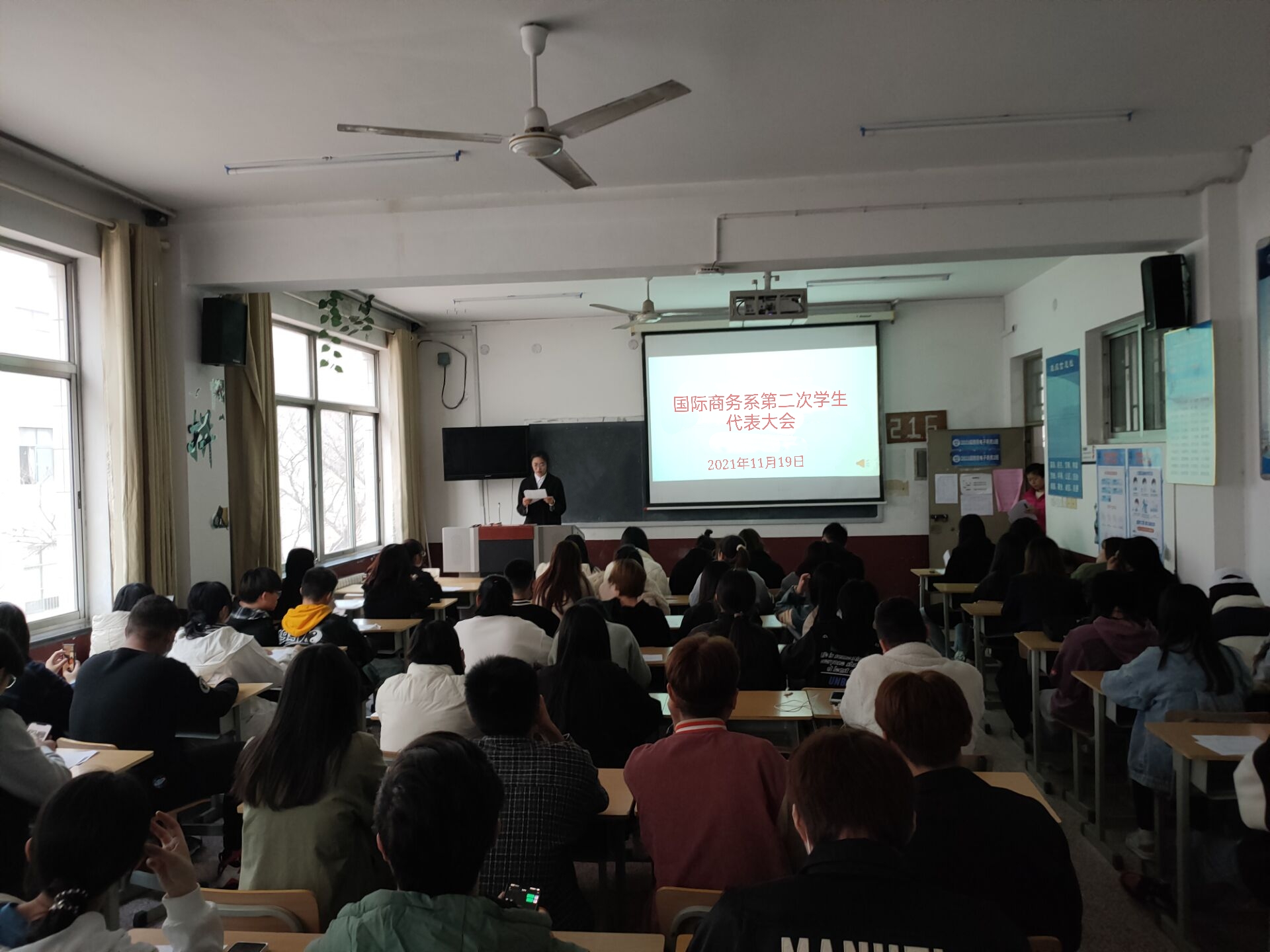 11月19日下午,国际商务系第二次学生代表大会在四号楼216教室顺利召开。全系83名学生代表参加大会。