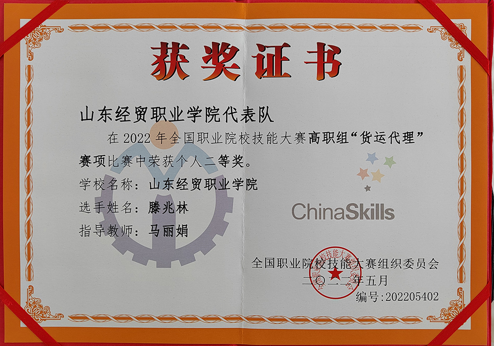 人才培养成果显著:在全国关务技能、货运代理等大赛中获二等奖6项、团体三等奖2项及多项个人奖,在省职业院校技能竞赛中多次获得一等奖二等奖。