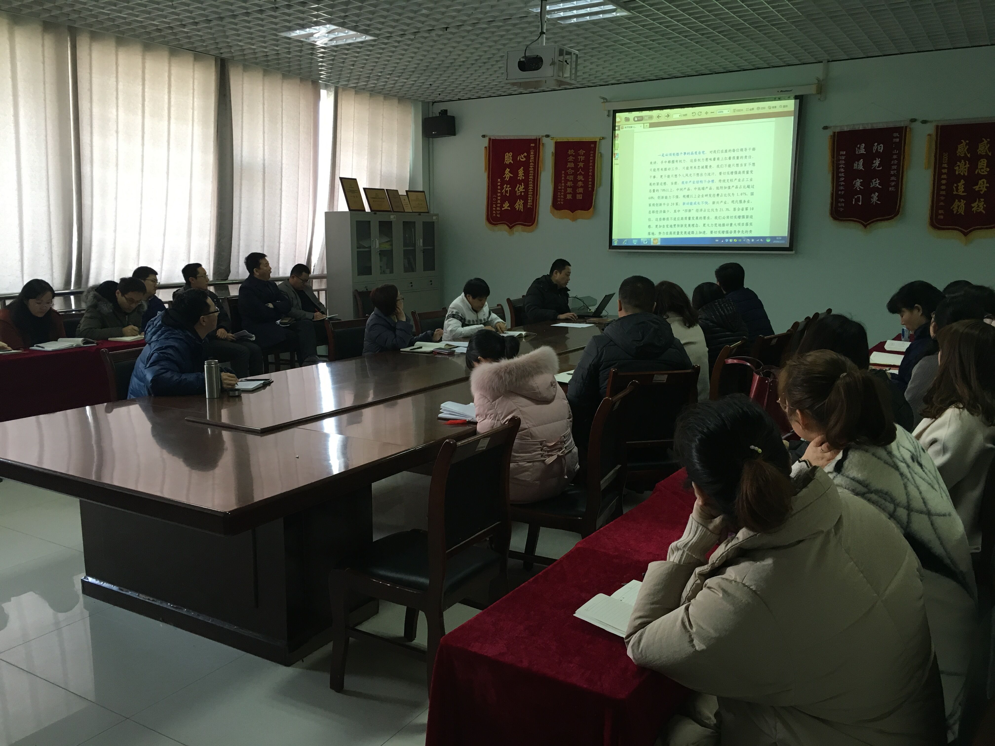 2月23日上午,工商管理系在实训楼508会议室召开专题学习会议。会议由工商管理系党总支书记高巍主持,全体教师参加。