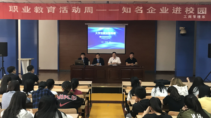 5月8日下午,由工商管理系组织的“职业教育活动周—知名企业进校园”活动在虎扑nba直播第一报告厅举行。活动邀请了鲁南制药集团股份有限公司潍坊大区经理石强、总公司人力资源部经理战祥龙为同学们作了“大学生职业生涯规划和企业文化”专题讲座。
