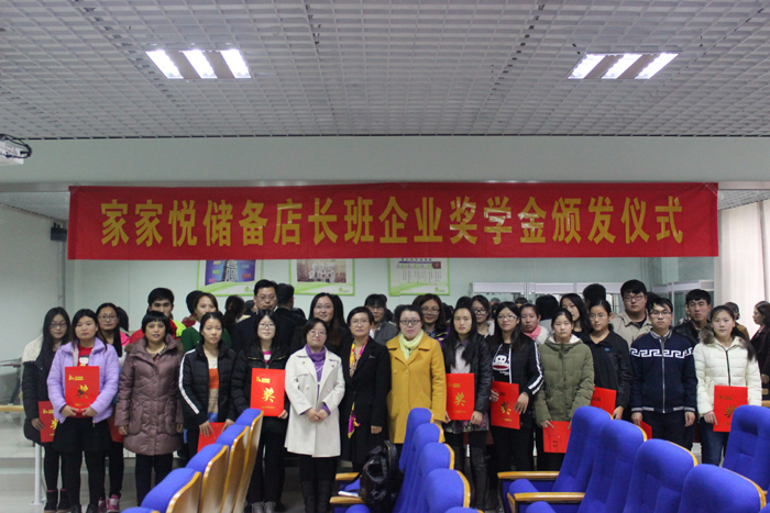 根据家家悦储备店长班学生在校及实习期间的综合表现,刘铮、王硕两位同学获一等奖学金;王文娟、郇露杰等四位同学获二等奖学金;张然、吉杨杨等七位同学获三等奖学金;房薇薇、彭庆方等六位同学获鼓励奖学金。