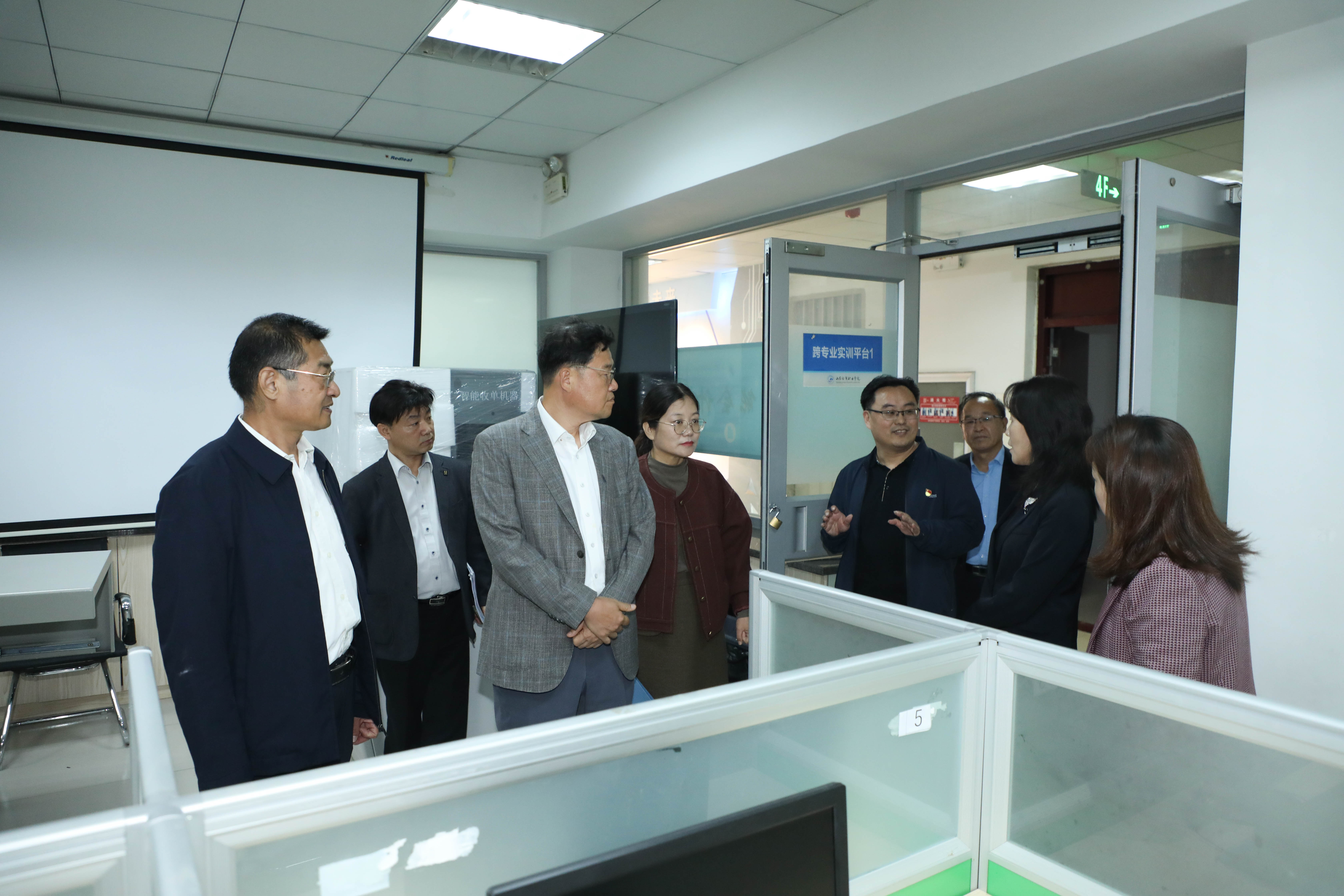 在项目师生热烈的交流讨论后,陈卫国陪同客人观摩了中外合作办学项目2022级大数据与会计班授课现场,实地查看了解外教公寓情况,参观了会计实训室。
