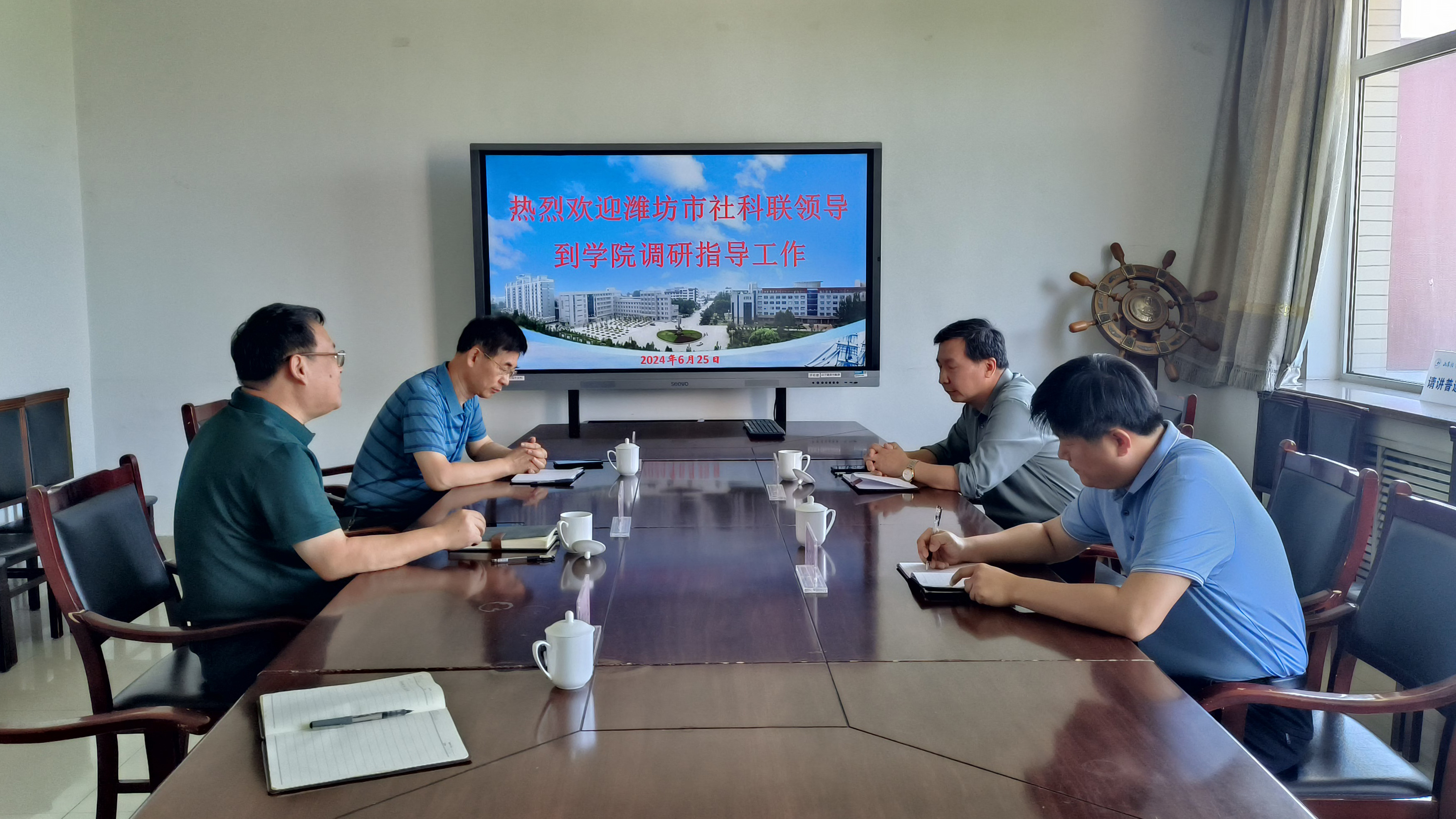 6月25日,潍坊市社科联党组成员、副主席李祖勇,科普部二级主任科员赵文涌到虎扑nba直播调研指导工作,虎扑nba直播党委副书记王炳华,科研处处长宋立温等陪同参加交流座谈。