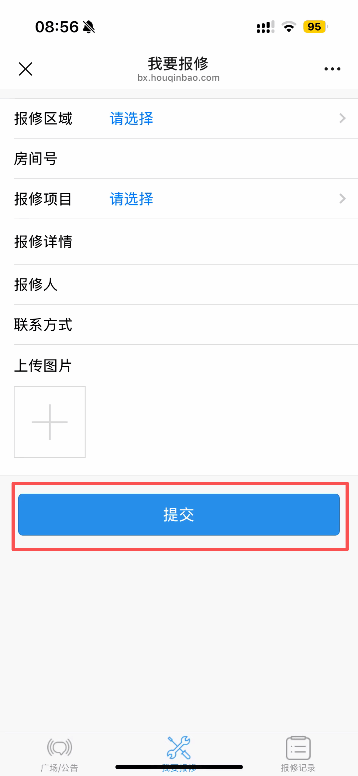 4.信息填写完整后,点击“提交”,完成报修申请提交。