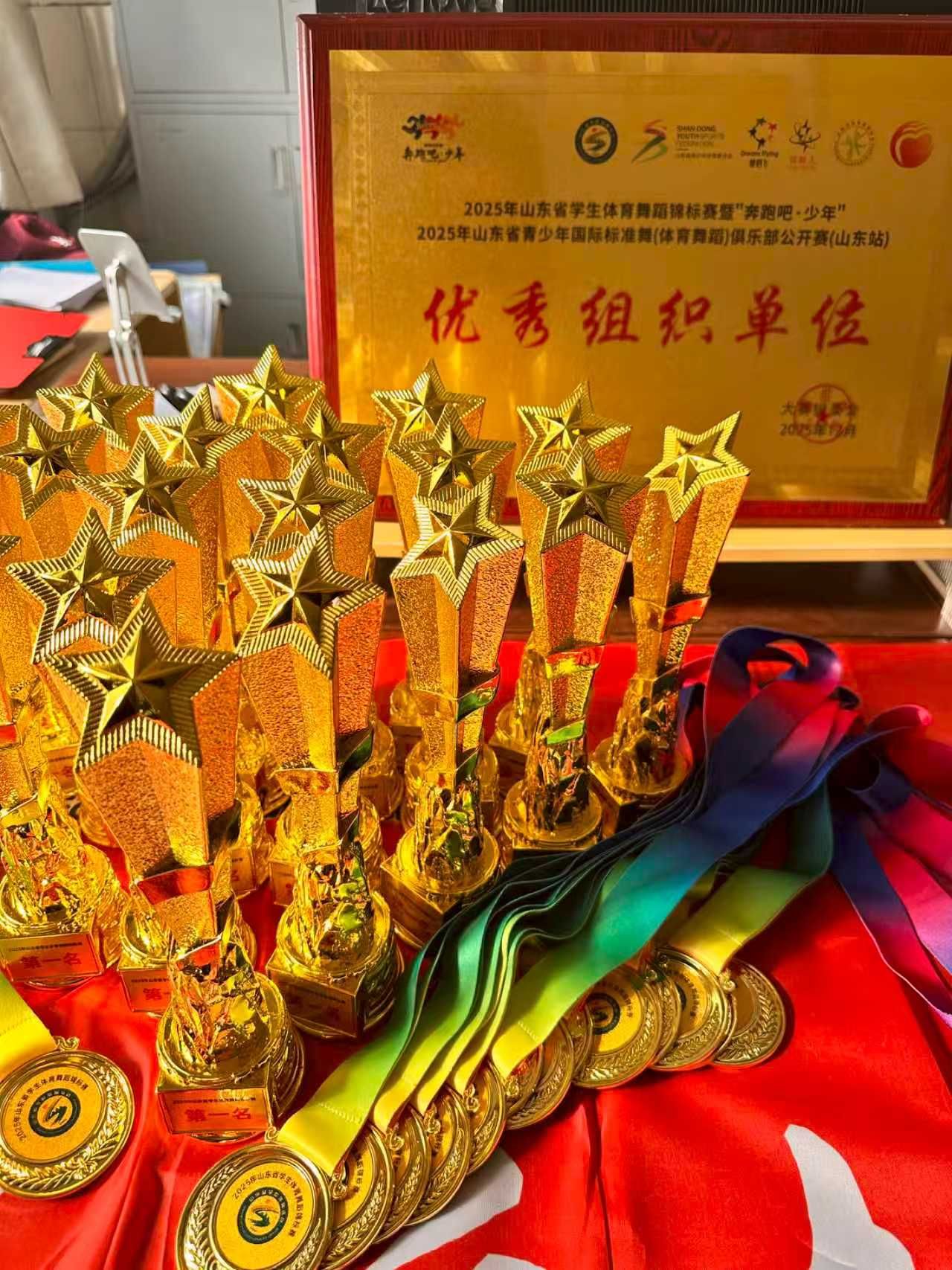 近日,2025年山东省学生体育舞蹈锦标赛在济南圆满落幕。虎扑nba直播代表队凭借扎实的功底与出色的临场发挥,获得11金6银3铜的优异成绩。李静、徐再飞老师被评为“优秀教练员”,虎扑nba直播荣获“优秀组织奖”。