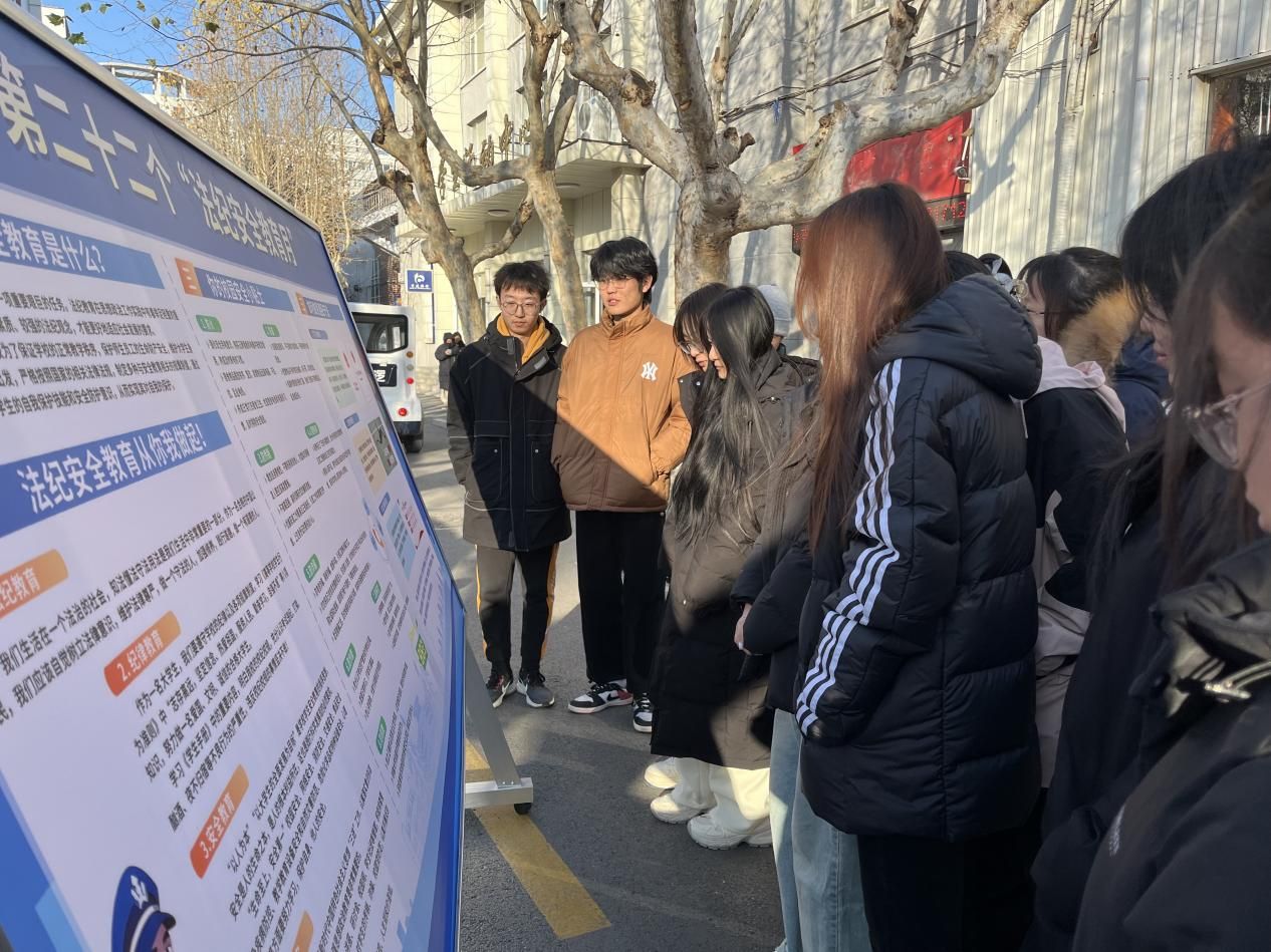 举办法纪安全警示图片展。展览围绕防火防盗、防诈骗、防溺水、禁毒拒邪、交通食品及网络安全等重点领域,以形象生动的图片形式直观展示出校园安全防范要点,有效强化了学生的安全意识。