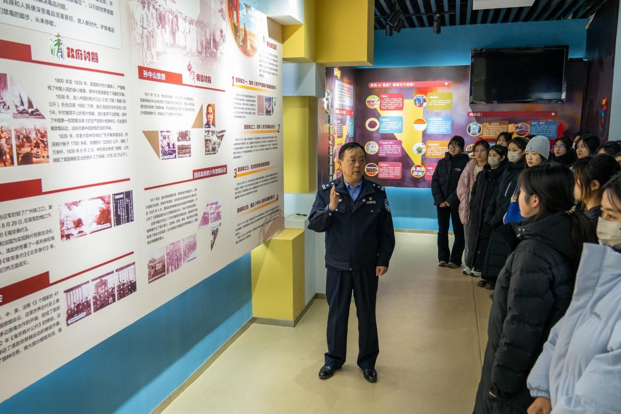 参观禁毒教育基地。活动中,禁毒大队民警为学生讲解了中国禁毒史、毒品形态与危害、禁毒法律法规等内容,并引导学生参观展柜中陈列的传统与新型毒品样本,切实提升了同学们对毒品的辨识与防范能力。同学们纷纷表示,要珍爱生命、远离毒品,并积极担当禁毒宣传员,向身边人传播禁毒知识,共同参与禁毒斗争。