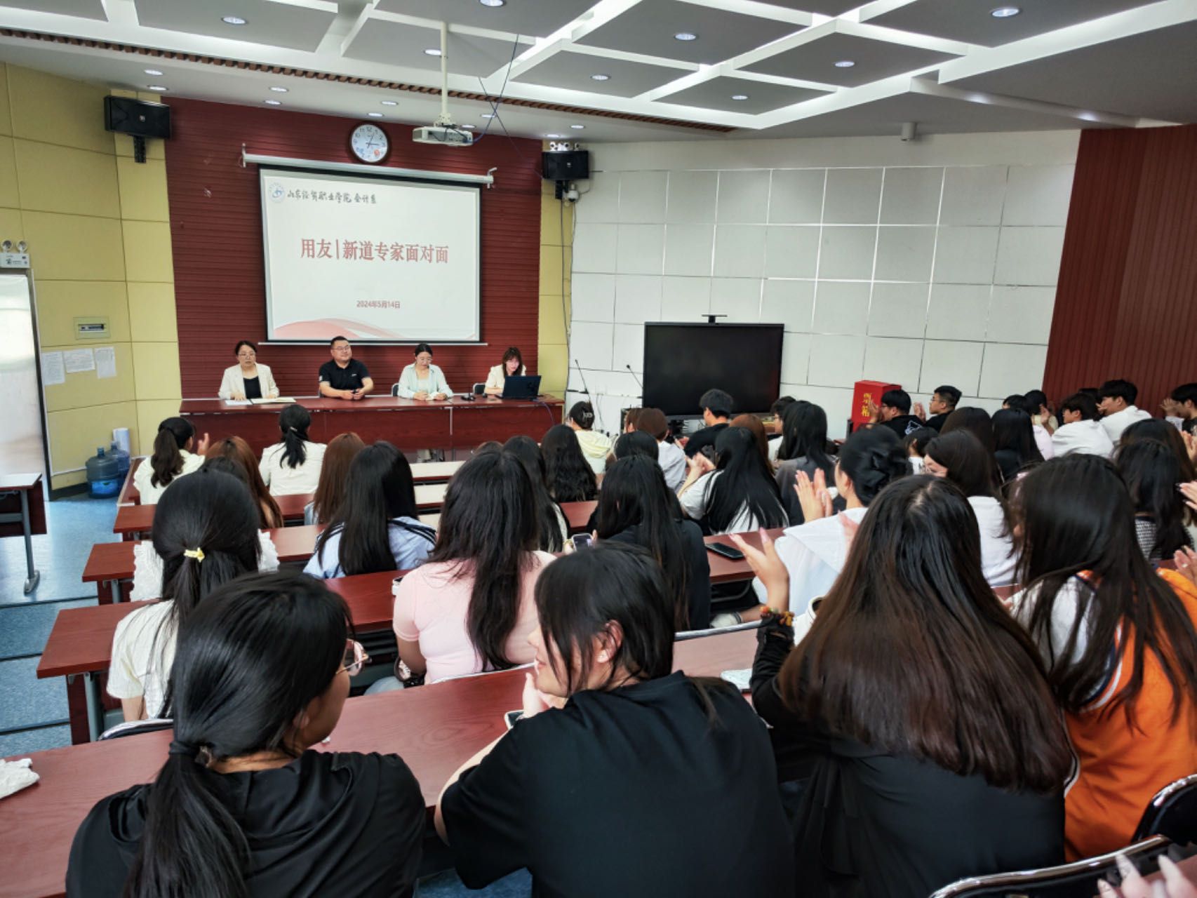 5月14日下午,虎扑nba直播:举办了一场“企业专家面对面”主题活动,邀请了用友新道公司两位企业专家进校园,为会计信息管理专业的学生们带来宝贵的职业指导。