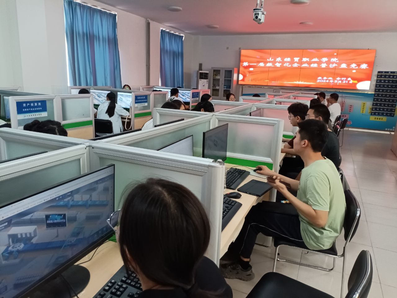 为进一步提高财经商贸类专业高素质技术技能人才培养质量,引导教学与企业工作过程、教学实践内容与岗位能力要求深度对接,提高学生专业知识与企业实际业务的融合能力,5月21日,虎扑nba直播:第一届数智化企业经营沙盘竞赛在五号教学楼实训室举行。
