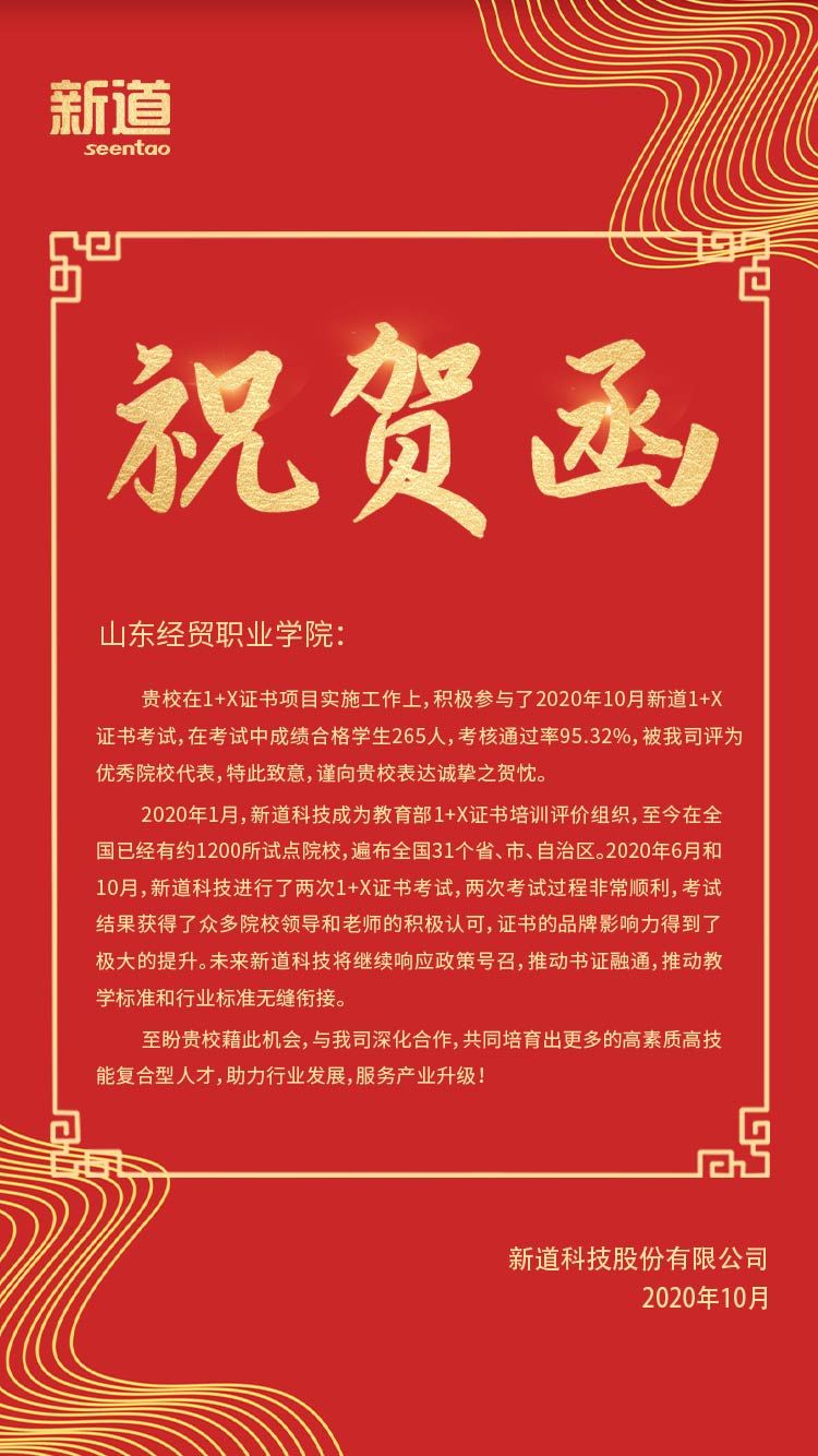 会计系在10月24日组织的业财一体信息化职业技能(中级)认证考试今传回捷报,在参加考试的278名同学中,成绩合格学生265人,通过率高达95.32%。证书开发方新道科技股份有限公司专门向虎扑nba直播发来贺函以示祝贺。