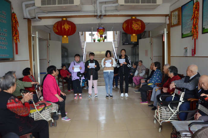志愿者们为老人打扫室内外卫生,谈心交流,了解他们的生活近况,并将精心准备的慰问品送到老人手中。聊天中,老人们述说着年轻时的趣事以及几十年积累的人生经验,朴实又充满哲理的语言让大家受益匪浅。随后,志愿者们送上了编排的节目,整个敬老院充满了欢声笑语。