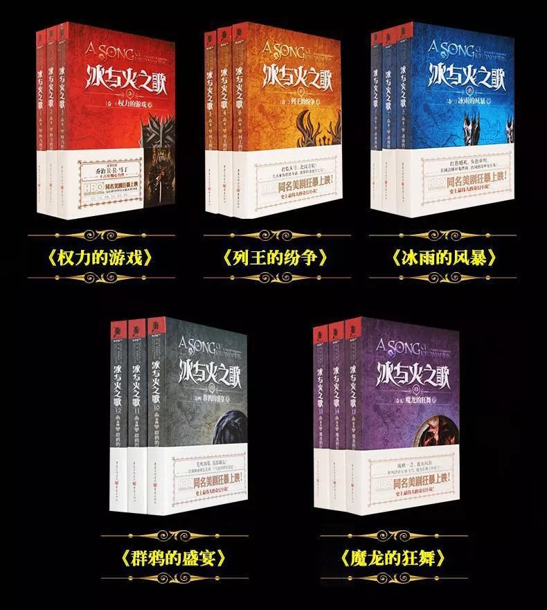 《冰与火之歌》(A Song of Ice and Fire)是由美国著名科幻奇幻小说家乔治·R·R·马丁(George R.R. Martin)所著的史诗奇幻小说,是当代奇幻文学一部影响深远的里程碑式的作品。于1996年初问世时,便以别具一格的结构、浩瀚辽阔的视野、错落有致的情节和生动活泼的语言,迅速征服了欧美文坛。迄今,本作已被译为三十多种文字,并在各个国家迭获大奖。作品主要描述了在一片虚构的中世纪大陆上所发生的一系列相互联系的宫廷斗争、疆场厮杀、游历冒险和魔法抗衡的故事,全书七卷(已出版到第五卷)浑然一体,共同组成了一幅壮丽而完整的画卷。