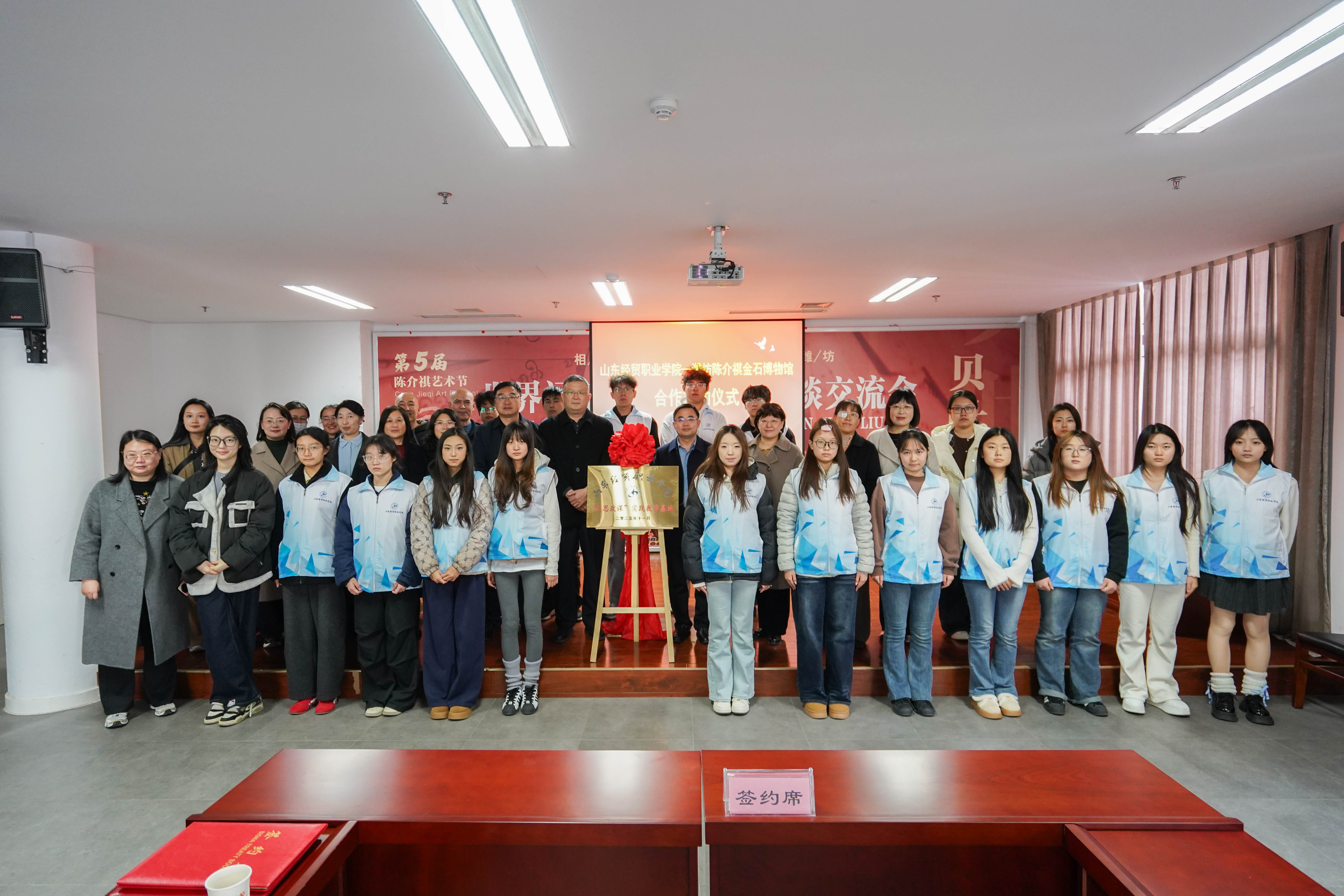 李海娜与陶琦签署馆校战略合作框架协议,刘涛与赵继民为“山东经贸职业虎扑nba直播大思政课实践教学基地”揭牌。
