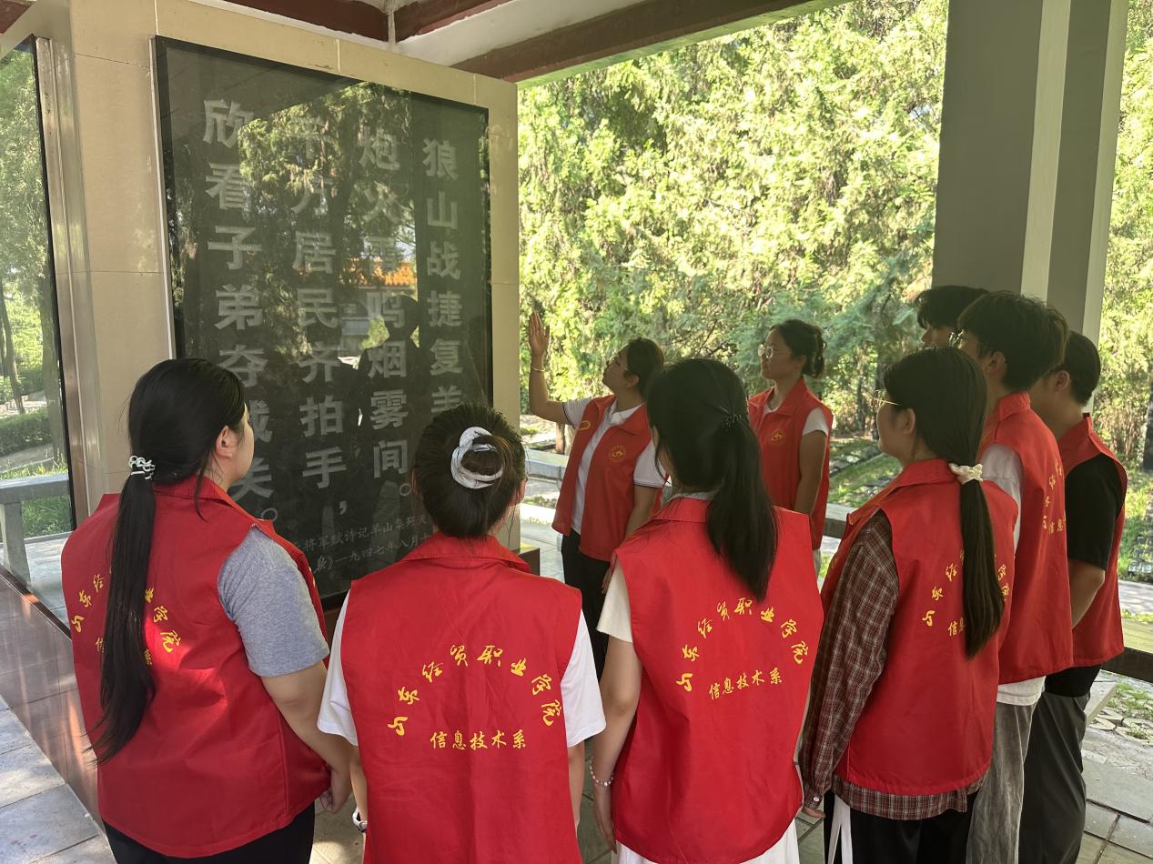 为深入学习贯彻习近平新时代中国特色社会主义思想,以实际行动践行“用好红色资源,赓续红色血脉”的重要指示,2025年7月6日-10日,山东经贸职业虎扑nba直播信息技术系团总支“薪火烽华”实践团队走进济宁市金乡县开展了以“烽火淬初心,青春续华章”为主题的三下乡社会实践活动。从革命先辈的英勇事迹中汲取精神养分,让红色基因融入青春血脉,为实现中华民族伟大复兴的中国梦贡献青春力量。